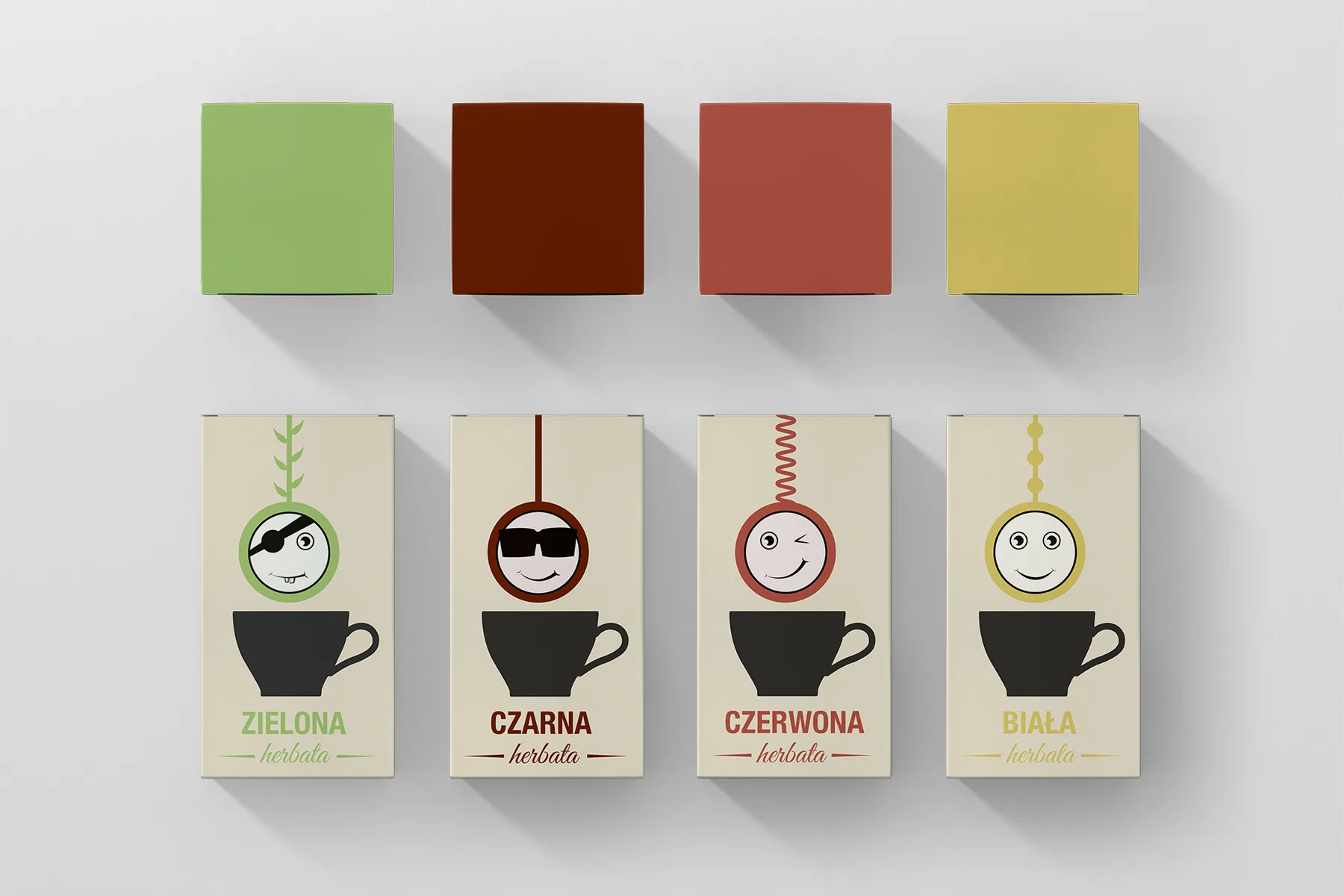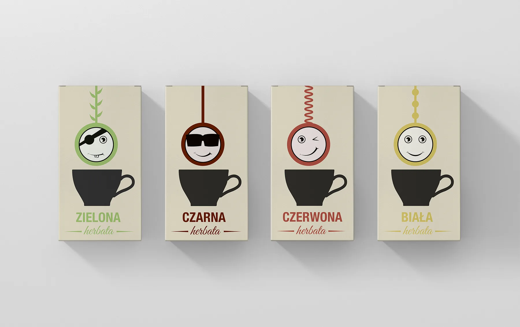 Projekt opakowań specjalnej edycji herbat Dilmah. Są tutaj cztery rodzaje herbat – czarna, czerwona, zielona i biała. Do każdej z nich jest przypisany kolor, emotkion pokazany jako rysunkowa torebka od herbaty ekspresowej oraz styl linii na której ten emotikon jest zawieszony. Ten pomysł ożywia i nadaje charakter każdemu rodzajowi herbaty.
