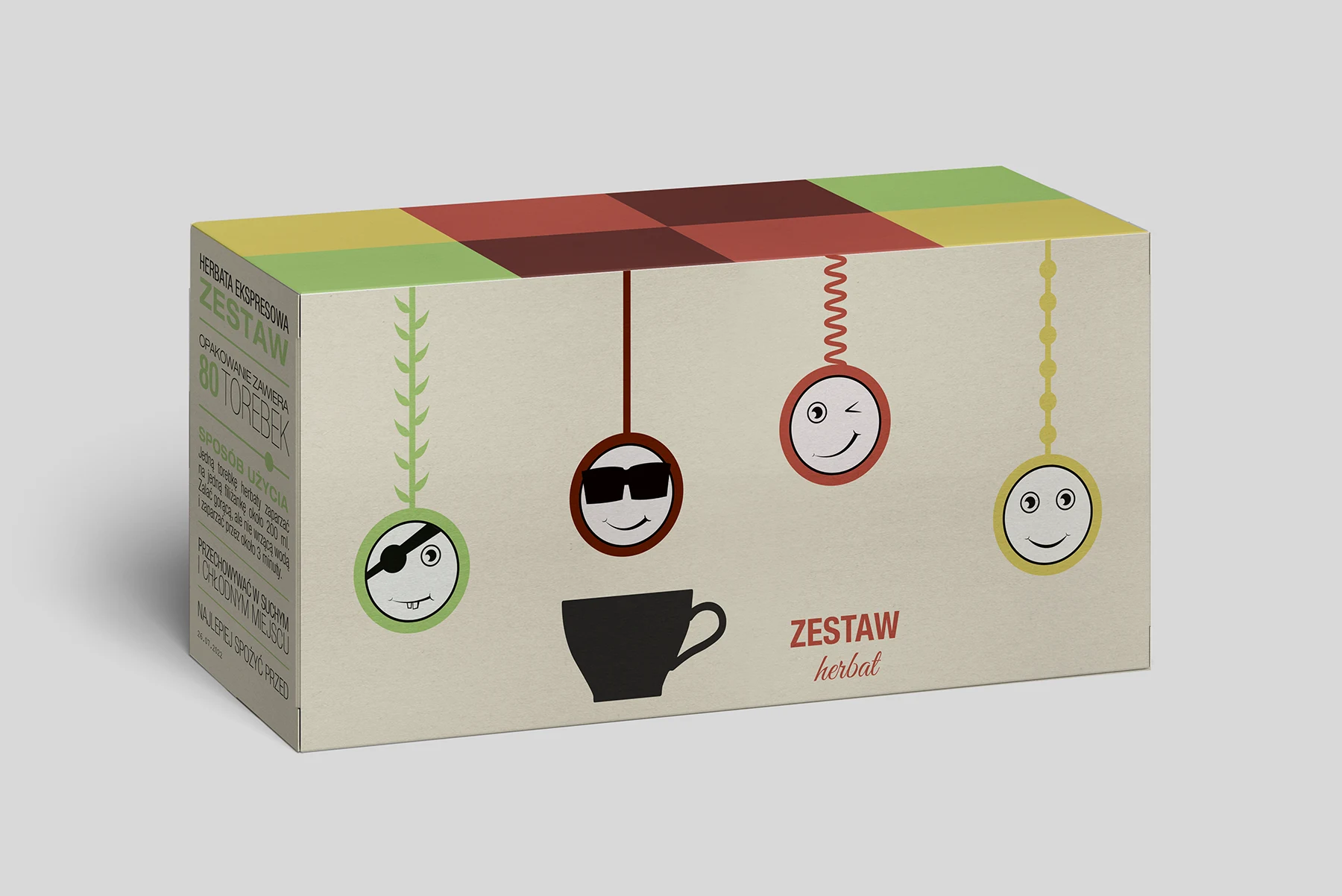 Mamy również 3 wielkości opakowania. Opakowanie małe mieści 20 torebek herbaty, większe mieści 40 sztuk. Jest też duży zestaw zawierający 80 herbat mieszanych – po 20 z każdego rodzaju. Pudełko przyciągna wzrok i jest doskonałe na prezent.