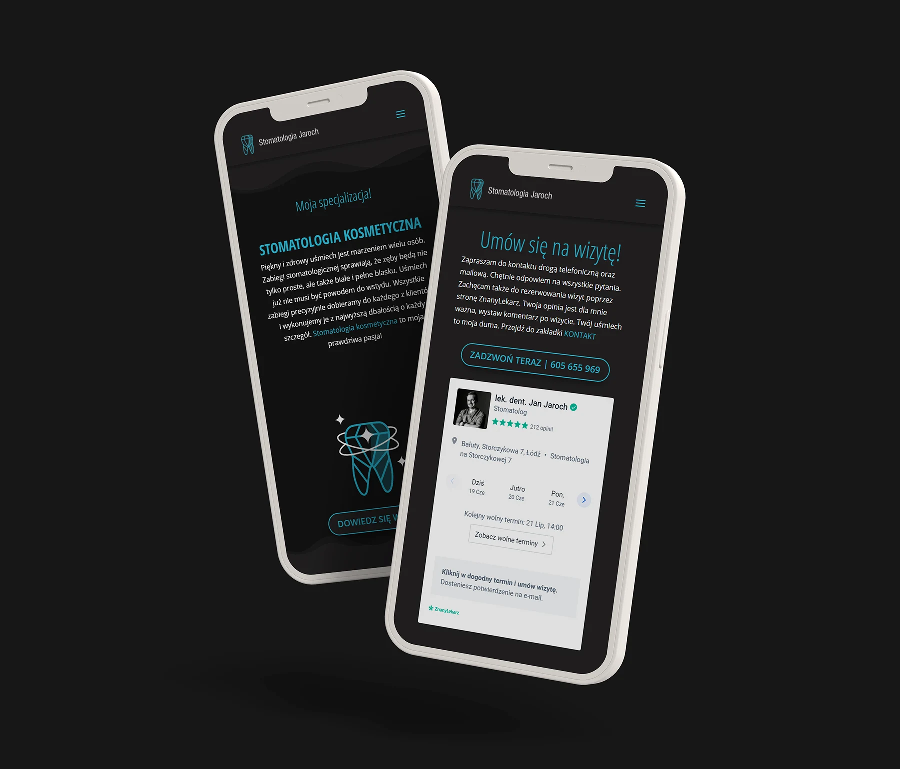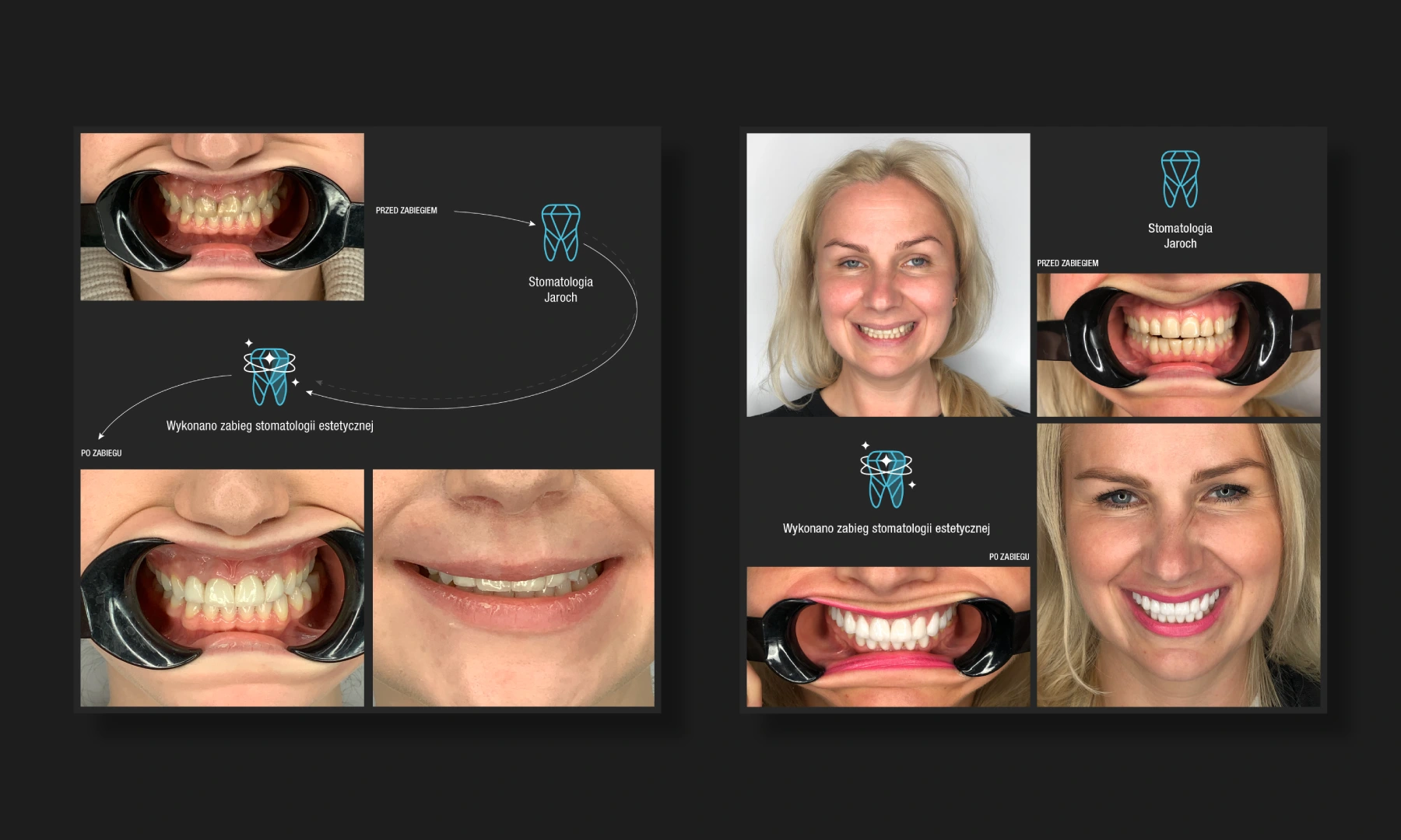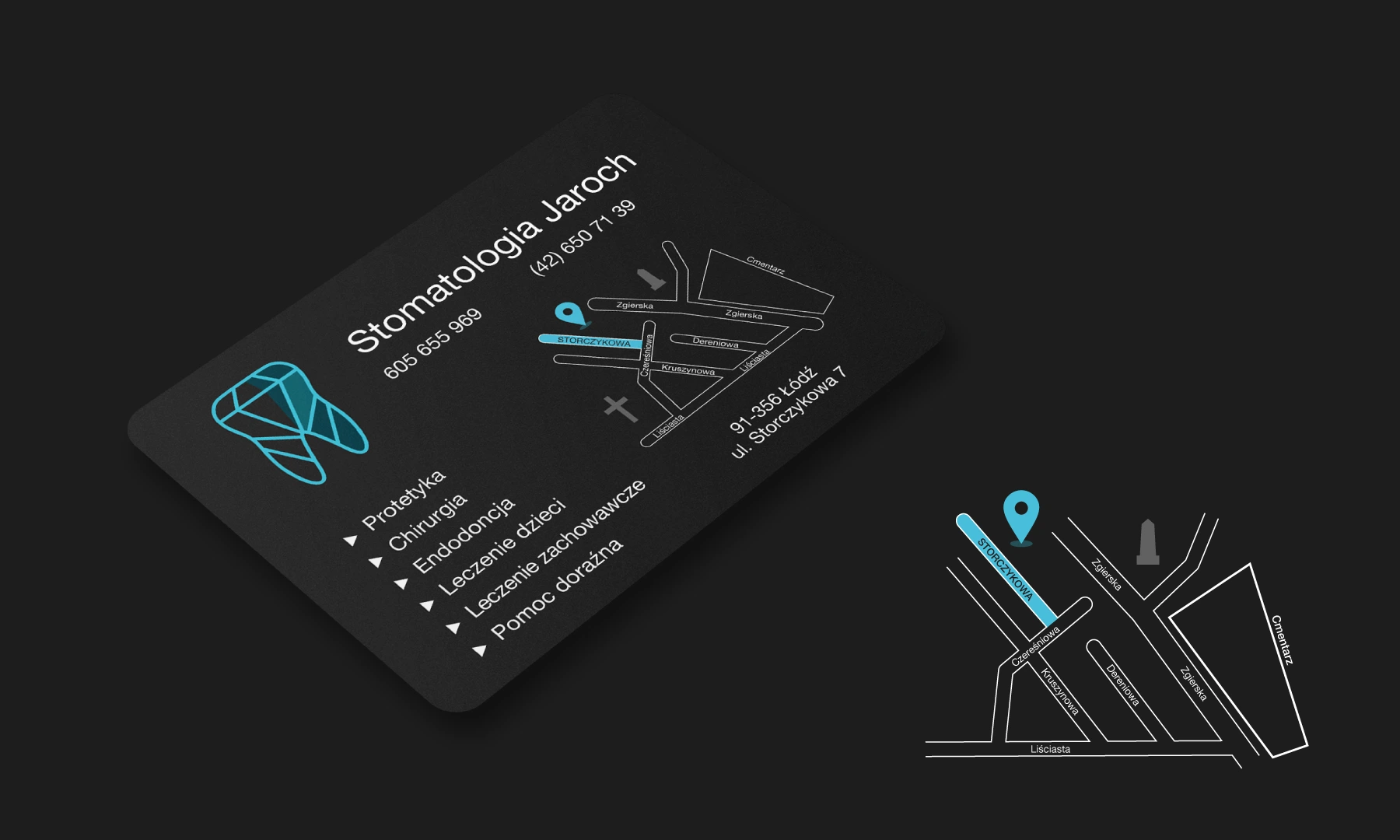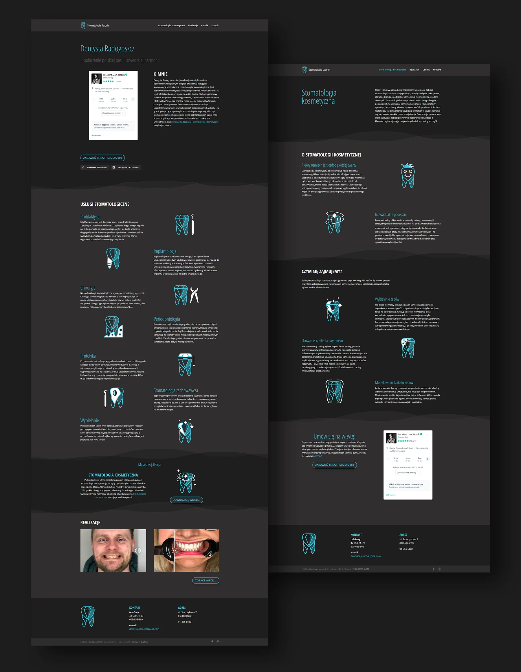 Z firmą Stomatologia Jaroch pracuję od wielu lat. Jest to jeden z tych projektów, który stworzyliśmy od zupełnych podstaw. Najpierw zrealizowaliśmy pomysł na logo, na którego podstawie powstała seria autorskich ikon.