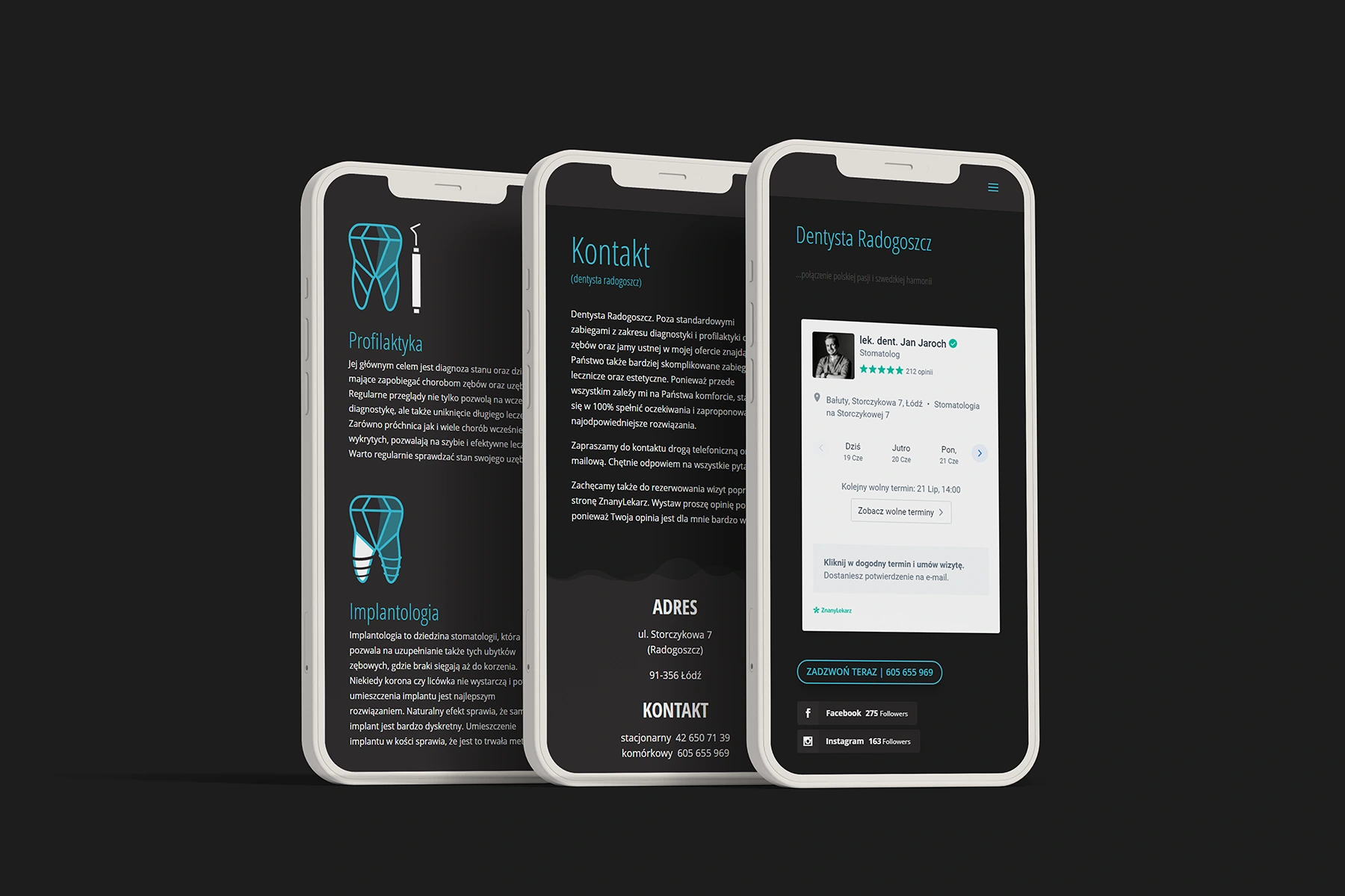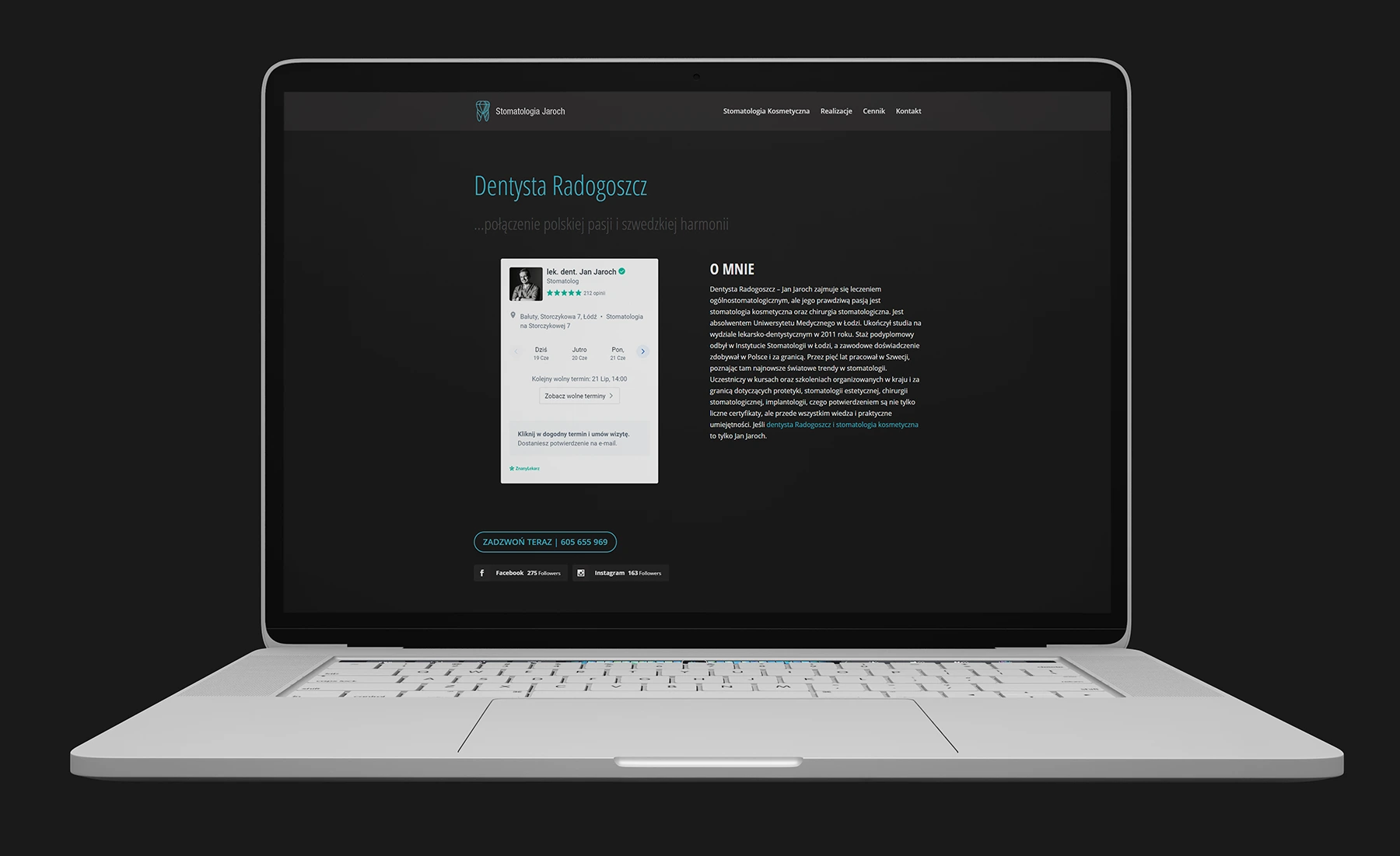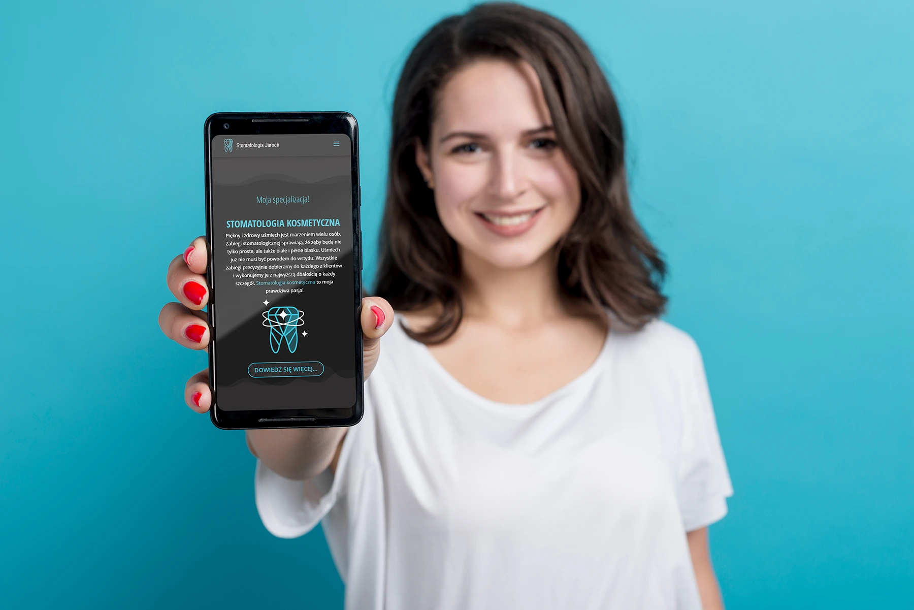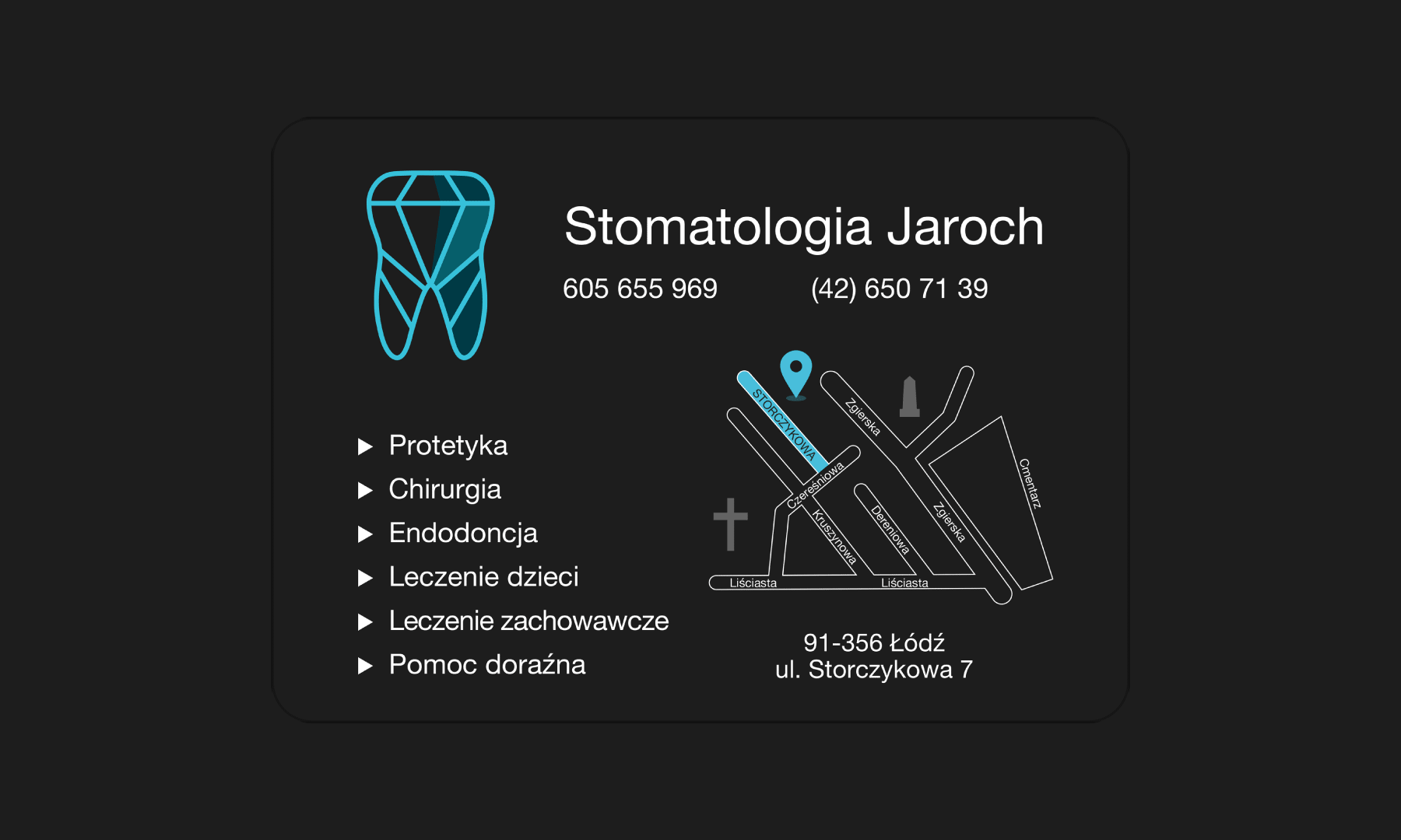 Z firmą Stomatologia Jaroch pracuję od wielu lat. Jest to jeden z tych projektów, który stworzyliśmy od zupełnych podstaw. Najpierw zrealizowaliśmy pomysł na logo, na którego podstawie powstała seria autorskich ikon.