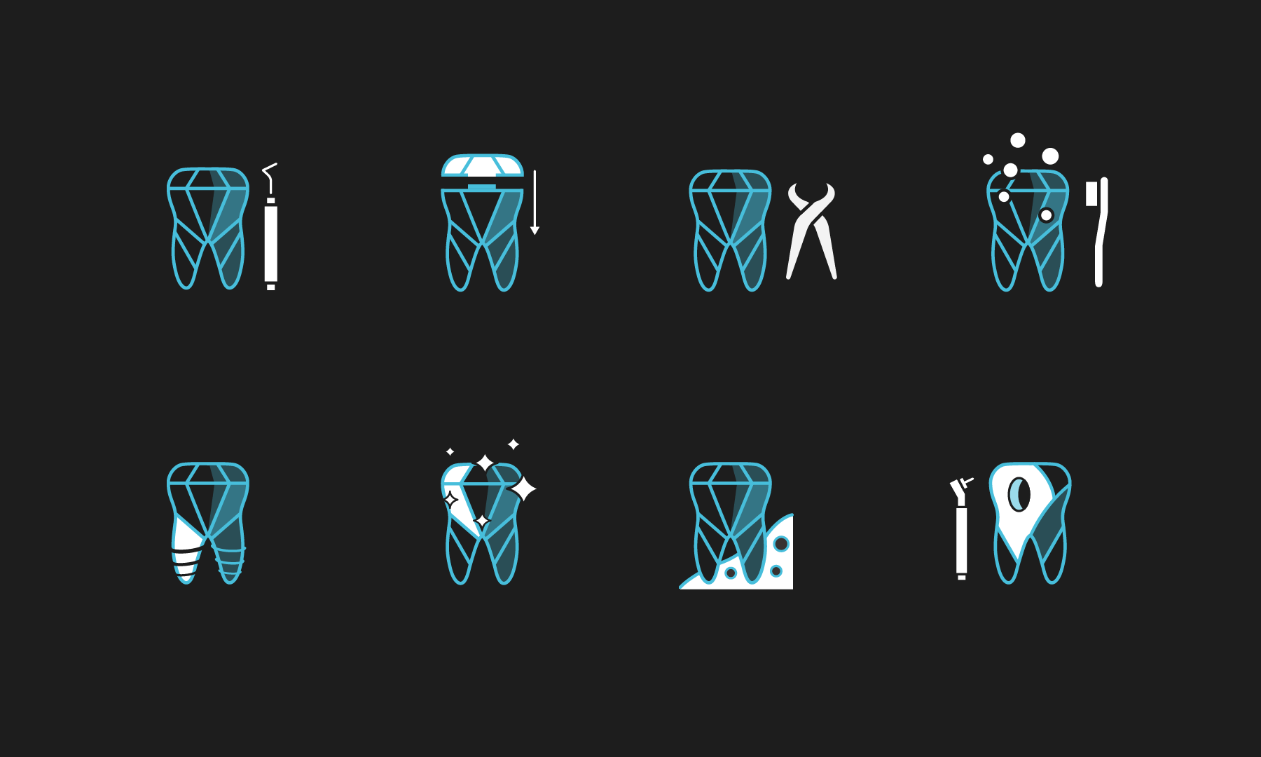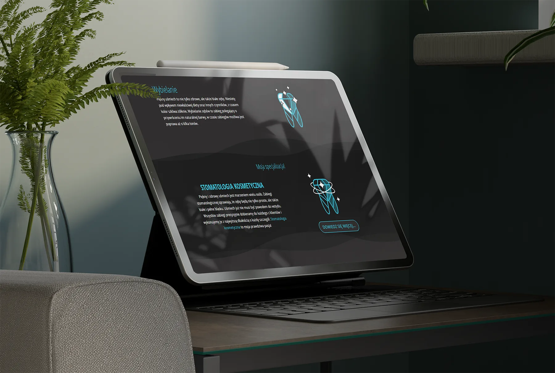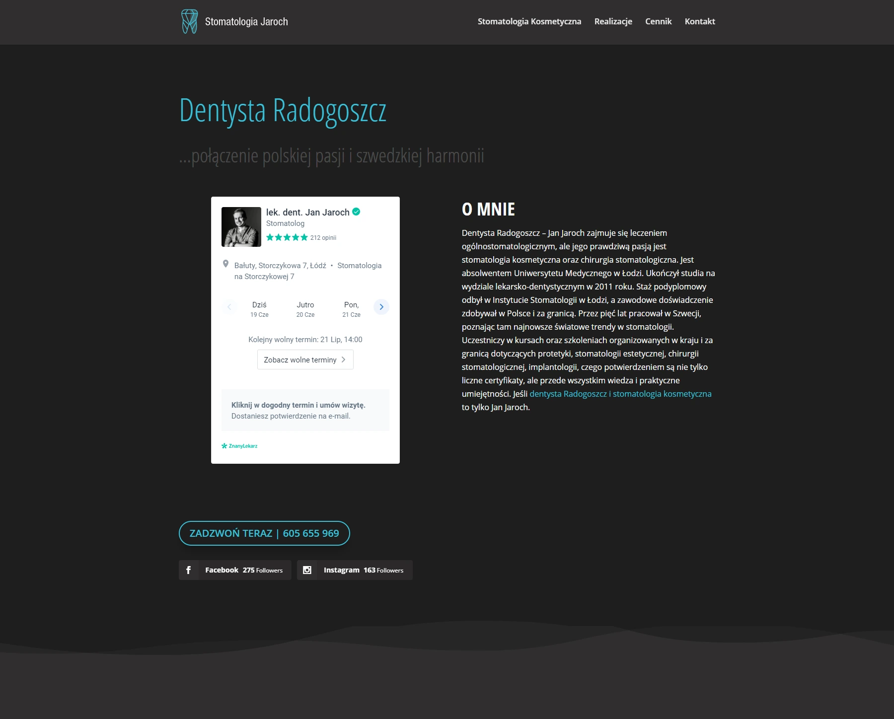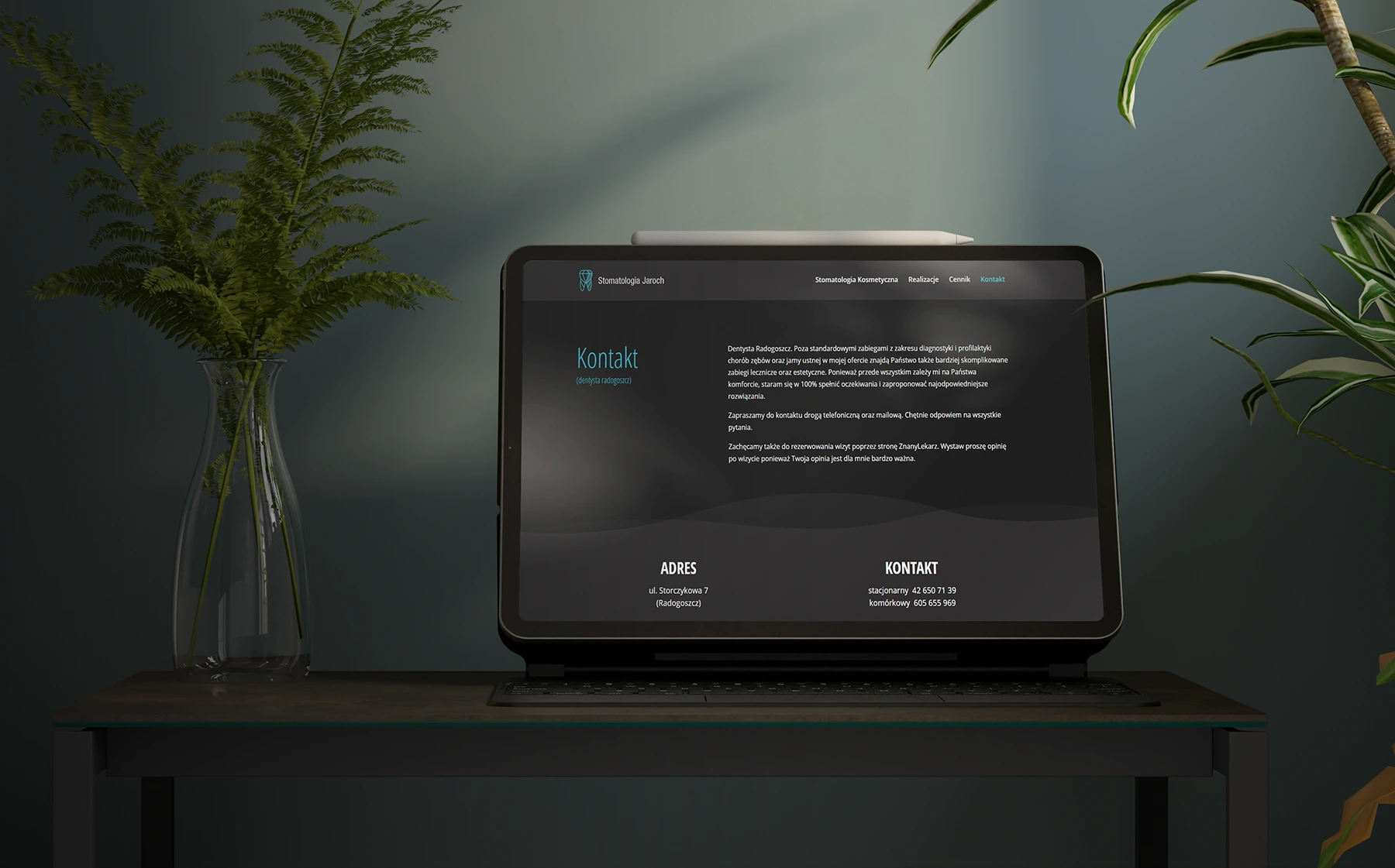 Z firmą Stomatologia Jaroch pracuję od wielu lat. Jest to jeden z tych projektów, który stworzyliśmy od zupełnych podstaw. Najpierw zrealizowaliśmy pomysł na logo, na którego podstawie powstała seria autorskich ikon.